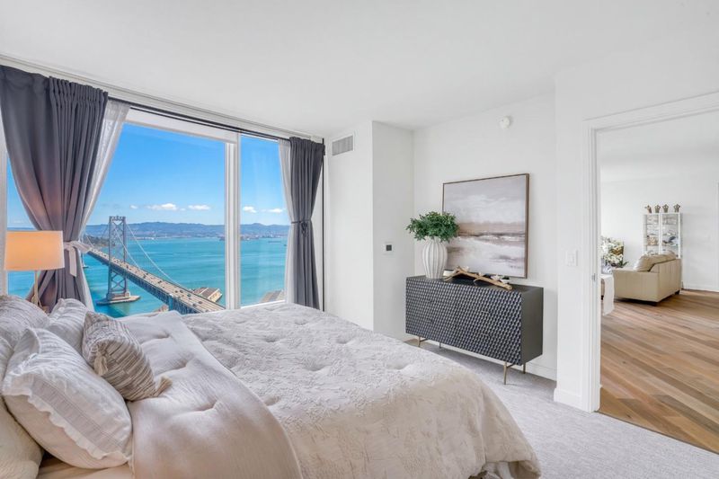 Residence 33D at The Harrison is a statement of refined luxury and timeless design. Crafted by renowned designer Ken Fulk, this home embodies elegance and modern sophistication. The open two-bedroom, two-bath layout is filled with natural light. This home offers mesmerizing bayfront panoramas sunrise over the water, dramatic evening skies and fog rolling over the bay, plus twinkling lights of the Bay Bridge. Floor-to-ceiling windows provide direct sightlines for seasonal fireworks and nightly light displays. A rare combination of luxury building services and community programming (Every household has its own private wine cellar and separate storage room; free yoga and fitness classes are offered every week;Residents also receive complimentary concierge services such as valet parking, printing, mailing, and package delivery right to their doorstep, and more). Unbeatable location: within a ten-minute walk to the Embarcadero waterfront, Financial District and the Salesforce transit hub; a short drive to City Hall, the Dogpatch arts district, Chase Center/Oracle Park and Mission Bay tech headquarters. Major attractions including Fishermans Wharf, the Palace of Fine Arts and the Golden Gate Bridge are approximately a 20-minute drive.