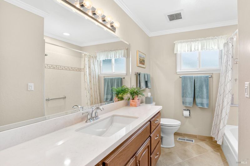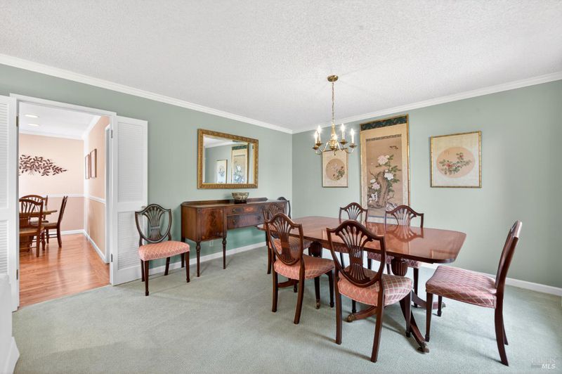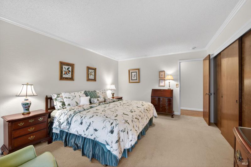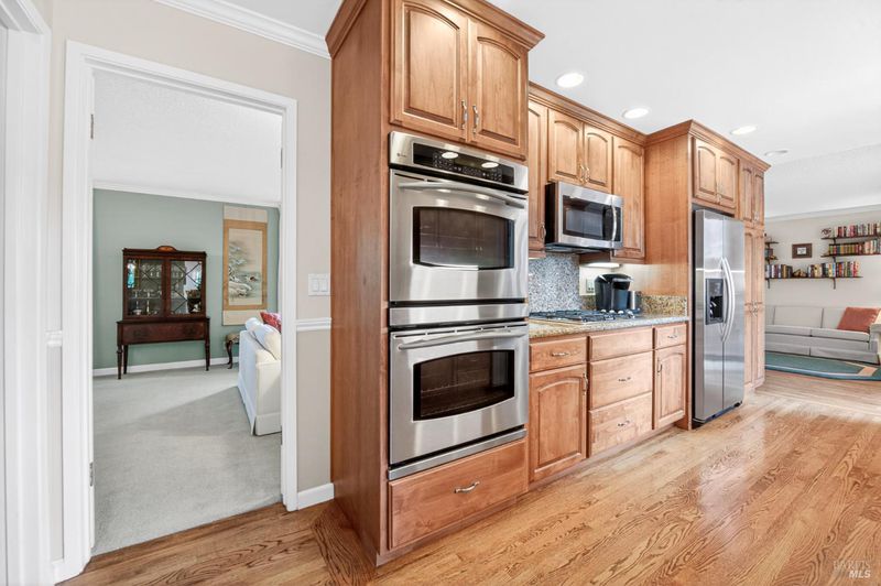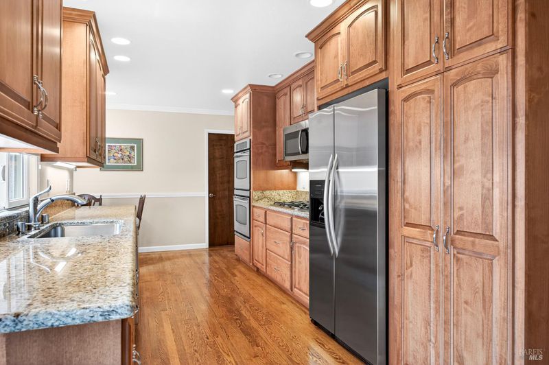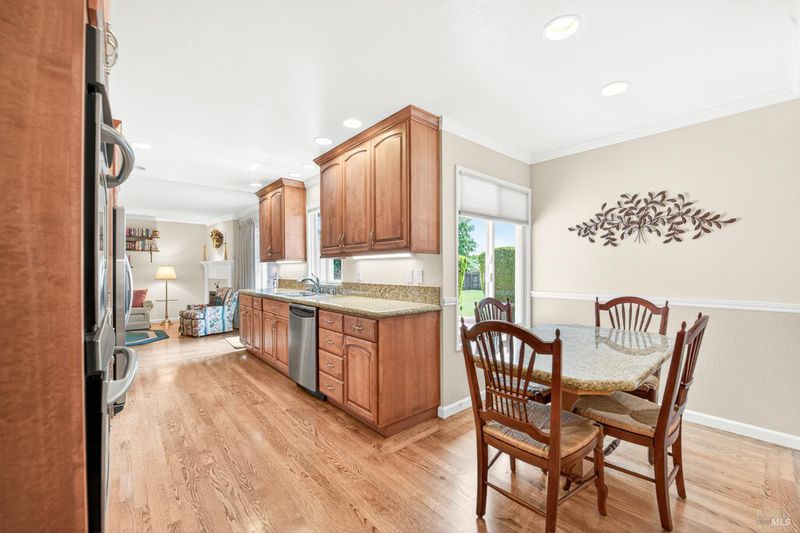 A standout residence in sought-after Green Valley Estates where timeless care meets a welcoming sense of home. Impeccably maintained by its original owner, this beautifully cared-for single-level residence reflects true pride of ownership throughout. Offering 4 bedrooms, 2.5 baths, and an approximate 320 sq ft multi-purpose room, this home blends enduring quality with thoughtful updates and a warm, comfortable living experience. A brand-new composite roof (2026) and solar (power purchase agreement) provide added value and efficiency, while the interior showcases hardwood flooring, custom crown molding, Andersen windows and sliders, two-tone paint, and quality wood doors throughout. The well-appointed kitchen features granite slab countertops, alderwood custom cabinetry, stainless steel appliances including a gas cooktop, double oven, and built-in microwave, along with a charming built-in dining nook perfect for everyday living. A spacious layout offers both a formal living room and dining room, complimented by a separate family room featuring a gas fireplace with custom mantel and marble surround creating distinct yet connected spaces for everyday living and entertaining. Additional highlights include an extended vanity with abundant cabinetry in the hall bath, Silestone countertops, tile flooring, and a well-equipped laundry room with built-ins and convenient half bath access. Step outside to a sprawling, level backyard, a rare and versatile setting offering endless potential to create a private outdoor retreat, garden oasis, your very own soccer field, and/or future entertaining space. Ideally located in desirable Green Valley, just minutes from I-80, about 50 minutes to SF and/or Sacto AND over the hill from Napa. Minutes to Solano College, Travis Air Force Base, Kaiser, North Bay Hospital, retail, library, schools, winery events and more. Most importantly, it is just a golf cart ride to the exclusive private Green Valley Country Club, offering an 18-hole golf course, tennis, swimming, dining, and premier amenities. Surrounded by local farms, renowned wineries, and scenic rolling hills, this is a lifestyle defined by comfort, convenience, and quiet luxury. Homes of this caliber, condition, and location are rarely available! Experience Green Valley living at its finest. Don't miss out!