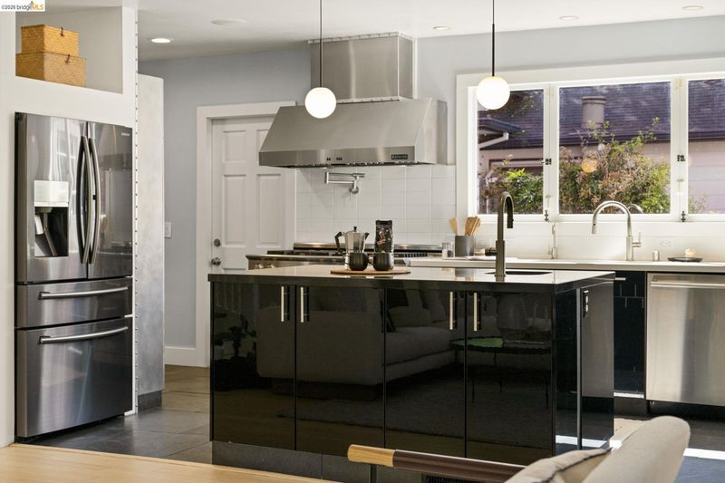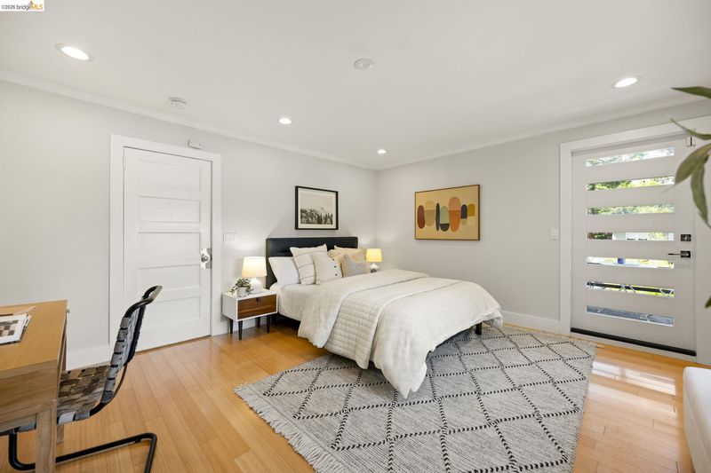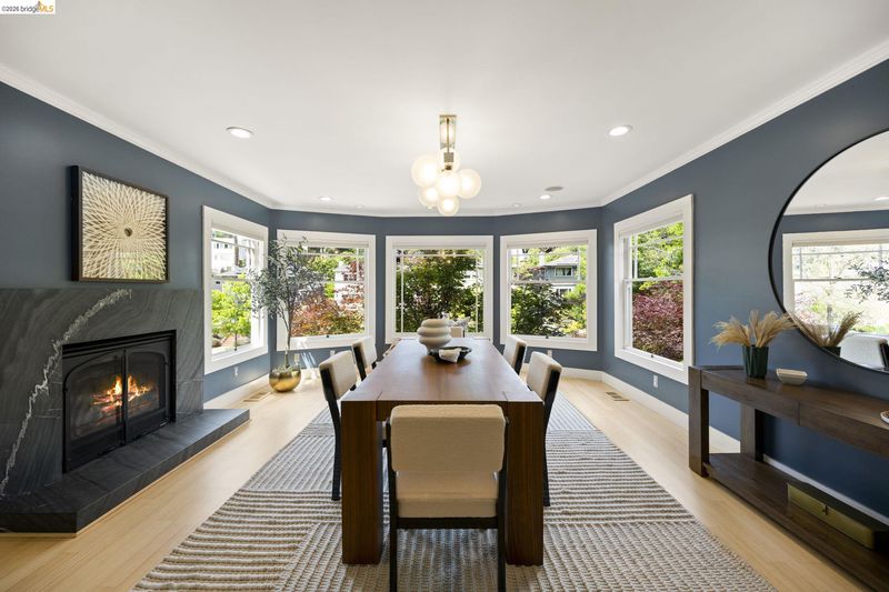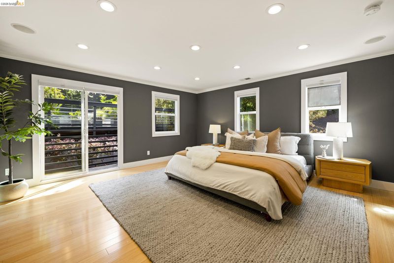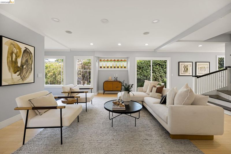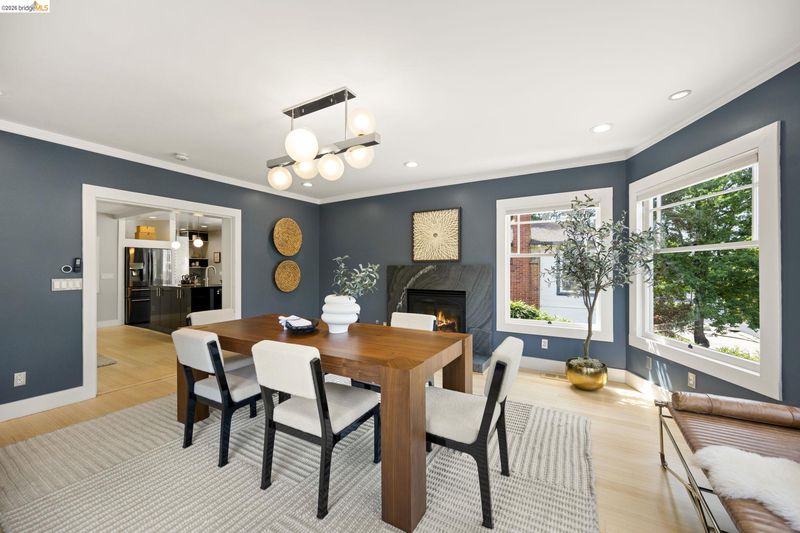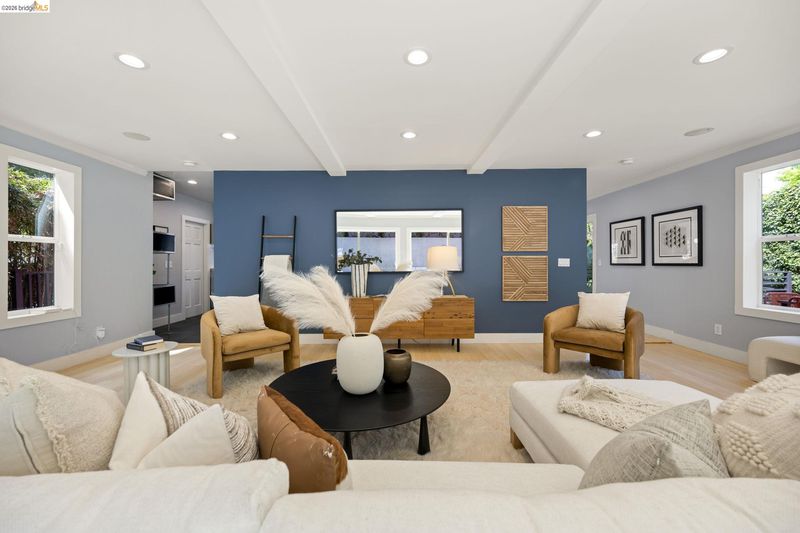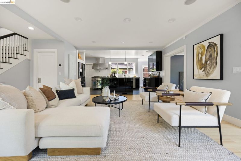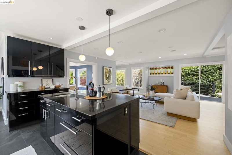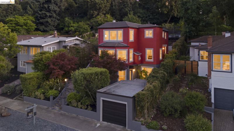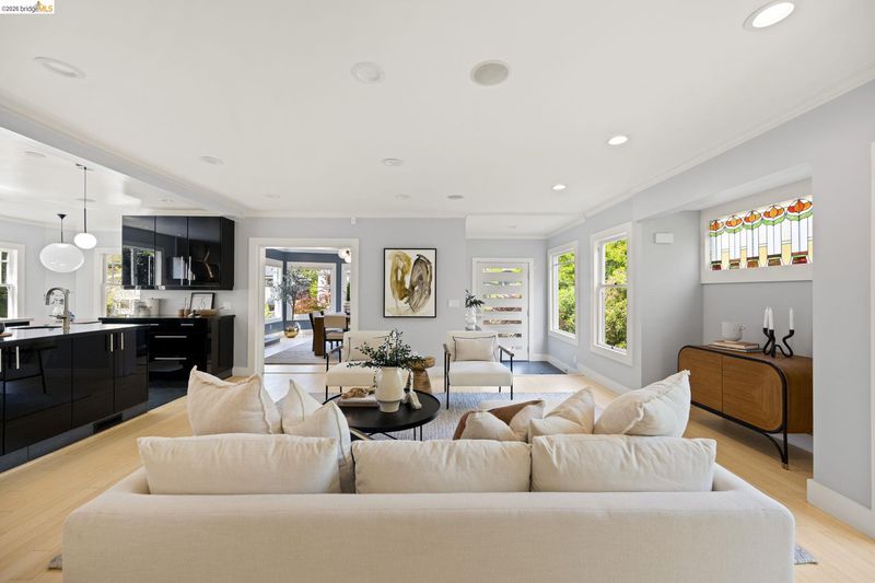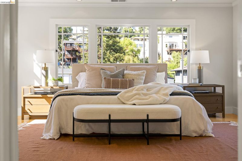 Contemporary Farmhouse Reimagined in the Heart of Crocker Highlands. Perched above the street, this rebuilt contemporary farmhouse blends classic character w/ modern design & thoughtful updates throughout. Expanded & re-engineered for enhanced flow & functionality, the home features light-filled interiors w/ an open great room connecting to a chef’s kitchen w/ high-end appliances, dual sinks, large island & ample storage—ideal for daily living & entertaining. Formal dining w/ bay windows & fireplace adds warmth & architectural presence. A rear living room opens to a level patio w/ hot tub & turf for seamless indoor-outdoor living, while an expansive upper-level view deck offers sweeping neighborhood views. Upstairs offers 4 bedrooms, including a spacious primary suite w/ balcony, a walk-in closet & spa-like bath, plus a second en suite & a full hall bath. Lower level includes a 5th bedroom or office w/ full bath & private entrance. Additional features include 2 parking spaces, including a 1-car garage w/ EV charger, solar, Tesla Powerwall, new roof & whole-house water filtration. Near award-winning Crocker Highlands Elementary, Lakeshore Ave shops, dining, Lake Merritt & easy Bay Bridge access.