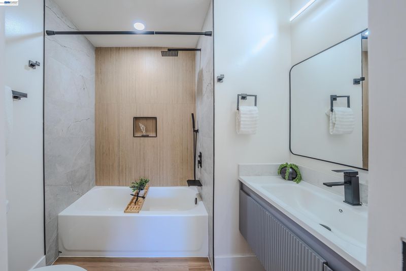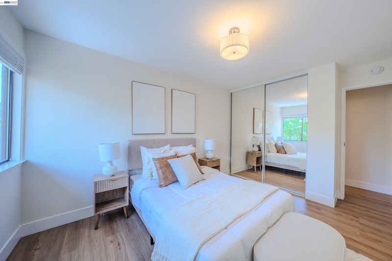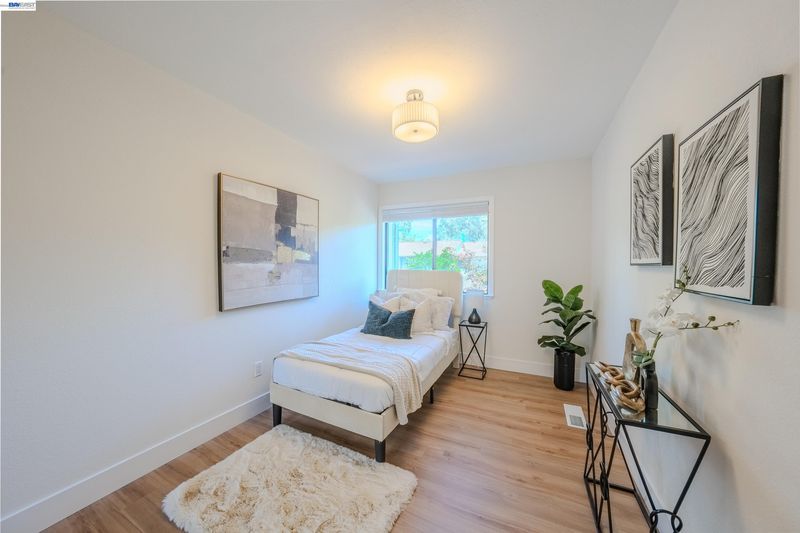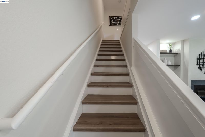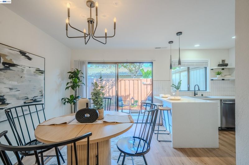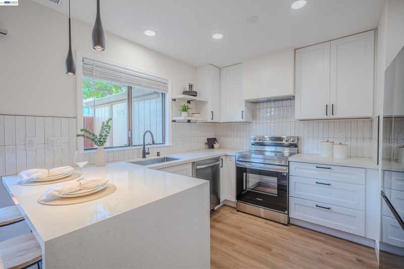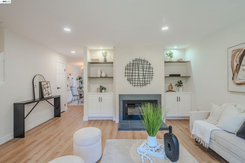 Welcome to this charming updated two story townhouse nestled in the vibrant Newark community. This property offers a blend of modern living having 3 bedrooms & 2.5 baths. The open living area welcomes you with a large bay window, recessed lighting & decorative electric fireplace with a remote control. Also, flanked by built-in shelving for a cozy ambience. 1/2 bath downstairs with eat-in kitchen that can act as a dining area. Sliding door which leads to adjacent patio & landscaped yard with privacy entry & storage shed. Complete turn-key with tasteful updates; white oak vinyl plank flooring throughout, decorative lighting & top to bottom professional finishes. Designer type kitchen complete with a Samsung SS appliance package, Quartz countertop with breakfast bar & pantry area. Updated baths with added rainfall style shower for spa like experience. Upstairs primary suite with exceptional clean & modern designs. Residents enjoy HOA amenities such as a pool, tennis courts among others. Easy access & walking distance to supermarkets, retail stores & restaurants. Also, near Newark Mall, Costco, Tesla & Mass Transportation such as HWY 880 & 84. This home offers both modern living & convenience. A True Gem!