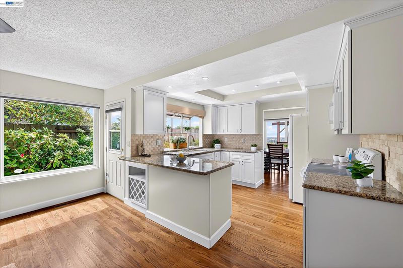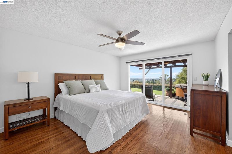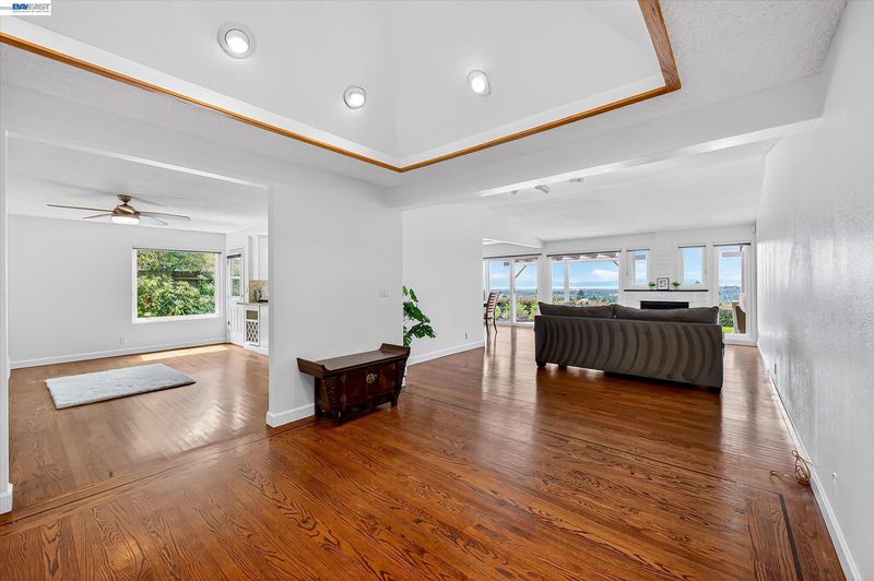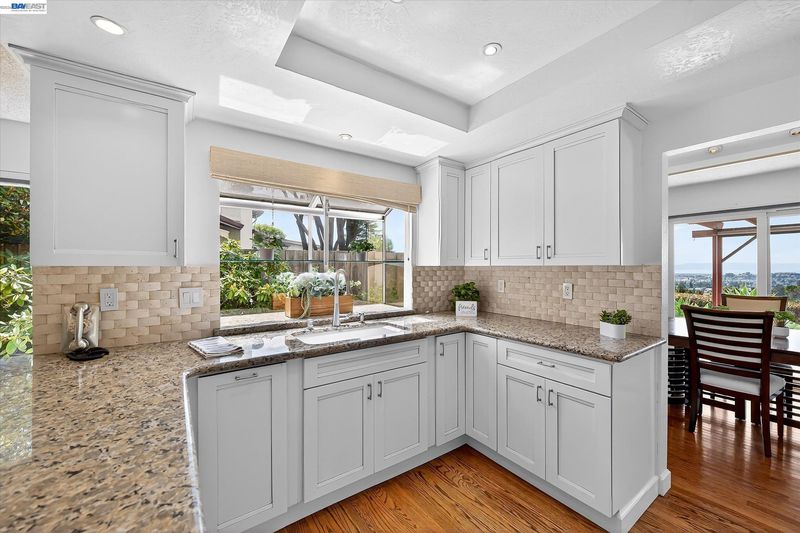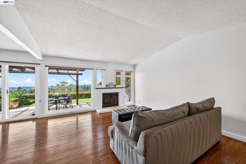 Beautiful single story 4BD/2BA home with stunning bay views and an ideal floor plan. Light-filled throughout, the home features expansive windows, a skylit entry, and seamless flow between the living, dining, and family rooms. The kitchen offers upgraded cabinetry, and a garden window overlooking the side yard. The family room includes a fireplace and sliding door access to the backyard, perfect for indoor-outdoor living. Three sliding doors open to the backyard and spacious side yard from the family room, primary suite, and secondary bedroom/office ideal for a garden, play area, or private patio retreat. The hall bathroom is updated with a tub/shower combo. The primary suite features a large walk-in closet, updated vanity & bathroom with shower. Additional highlights include hardwood flooring in main living areas, carpeted bedrooms, owned solar, alarm system, dual-pane windows, and laundry room. Enjoy breathtaking views from the backyard perfect for relaxing or entertaining. Backyard and driveway have stamped like concrete, spacious side yard, and views so stunning you won't want to leave. Close to Freeway, BART (5mins), Great Schools, Cull Canyon Regional Park, Bay Trees Park, Lake Chabot, Anthony Chabot Regional Park, and Golf Courses. Open Sat and Sun 1-4pm.