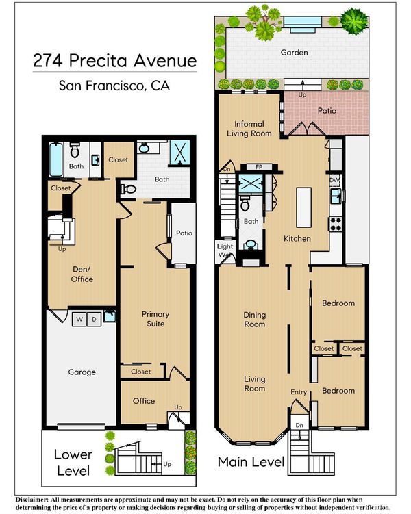 Sitting on a highly coveted, tree-lined block on the North slope of Bernal Heights, 274 Precita is an artfully remodeled and light-filled 3 bedroom 3 bathroom Single Family Home that timelessly blends modern upgrades with period architectural detailing. The main level features 2 bedrooms, formal living and dining rooms, a large chef's kitchen that opens to a stunning informal living room with a ceiling of angled skylights that generously supply the home with natural light. Oversized windows and large glass doors enhance the indoor-outdoor lifestyle and creates seamless flow to the beautiful terraced south-facing garden. The bottom level presents a large primary suite, ample storage, two office/den/flex-use spaces, laundry, and a one-car garage. There is also a large undeveloped attic. 274 Precita offers what few others can as it harmonizes a truly premier location less than a block from Precita Park with a home carefully designed with the joy of every day living in mind.