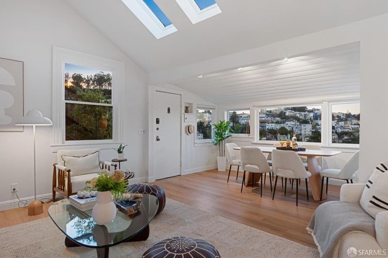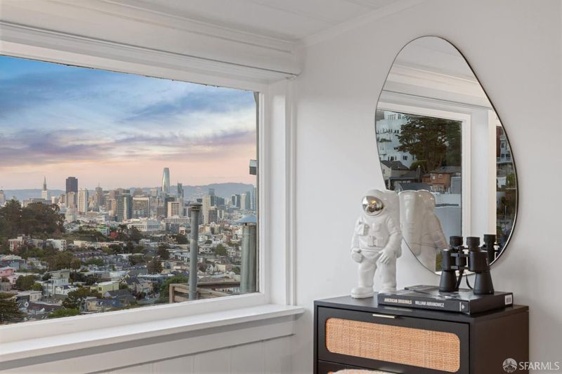 Iconic views, rare privacy, and a fully detached cottage perched right in the middle of it all: welcome to 501 Corbett Avenue. This distinctly San Francisco home blends classic architecture with thoughtful design - featuring vaulted ceilings, new vinyl plank flooring, a kitchen designed for cooking & connection, a spa inspired bathroom and sun-drenched spaces complimented by skylights - all framed by commanding views of downtown, the bay, rolling hillsides, celebrated landmarks and twinkling city lights. Situated at the crossroads of Cole Valley, the Castro, and Noe Valley, this Iron Alley Stairway location offers seamless access to vibrant neighborhoods, transit options, and daily conveniences. The hillside itself is defined by a network of historic pathways, micro-parks, and urban trails: highly walkable, deeply rooted in community, and authentically San Franciscan. Do not miss this once in an era opportunity to come home to 501 Corbett Avenue.