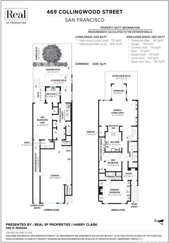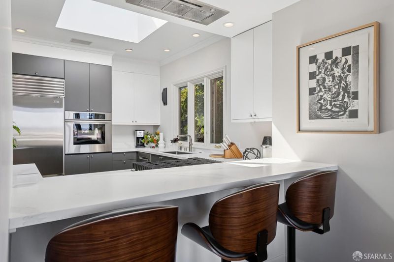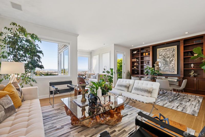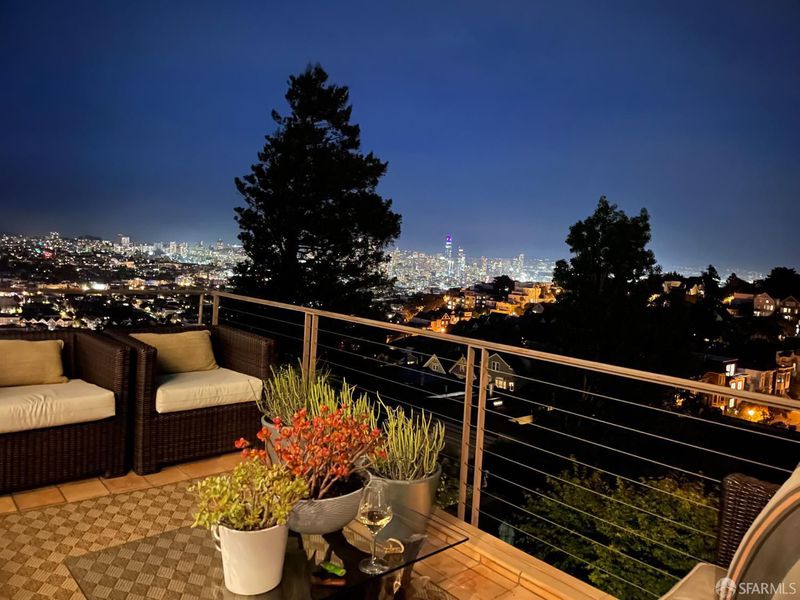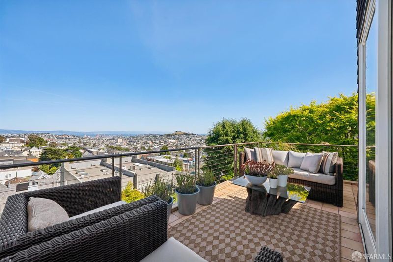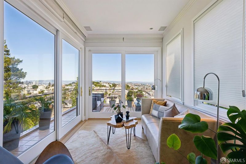 Conveniently positioned between Noe Valley and the Castro, this classic 30's home has been reconfigured to take full advantage of its hilltop location and extraordinary panoramic views. The generous main living level is enhanced by 9 foot ceilings, architectural skylights and an open floor plan that captures views of the San Francisco skyline, the Bay and well beyond. The renovated kitchen and bathrooms combine a modern sensibility with quality materials to create a clean and elegant ambiance. A large breakfast bar works great for casual dining while integrating the main living spaces for easy entertaining. The recently renovated primary suite features a fireplace, parquet hardwood floors, abundant custom closets and a newly added primary bathroom with walk-in rain shower. The second bedroom is conveniently positioned opposite another full bath which includes an over-sized shower and soaking tub. A dramatic light-filled stairway leads to the lower floor featuring a third bedroom suite configured for flexible functions. Also accessible privately from the street, this living space offers a great way to accommodate long-term guests or to generate rental income. Both living levels are extended by comfortable connections to multi-level east-facing decks, great for entertaining and enjoying the panoramic city views. The professionally designed landscape includes prolific mature lemon tress and a sculptural Japanese Maple. Once the home of Wilkes Bashford, a well-known clothing retailer and socialite of the Herb Caen era, the home includes vestiges of his fine taste and stature in San Francisco Culture. Hi-lights include a striking wall of custom walnut casework in the living room, and a 'Wilkes' outfitted walk-in closet. The home offers many systems upgrades including a recently replaced sewer line to the street, a newly refurbished roofing system, an outlet for fast car charging in the garage and a new 200 amp electrical service upgrade for future needs. The urban location is just a few blocks to the vibrant dining and nightlife of Castro Village and the shops and restaurants of 24th Street in Noe Valley. Seller is a CA licensed real estate agent. URL: collingwoodhilltophome.com for more info.