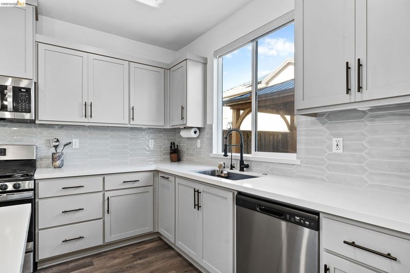Welcome to 138 Granite Way, a beautifully appointed residence located in Oakley’s sought-after Woodbury community. With a like-new feel and thoughtfully designed two-story layout, this home offers the perfect blend of modern style, comfort, and functionality. From the moment you step inside, you’ll appreciate the open-concept design, creating an effortless flow between the main living spaces and making the home ideal for both everyday living and entertaining. The heart of the home is the beautifully designed kitchen, featuring upgraded finishes, sleek black cabinet pulls, abundant cabinetry, and a bar area perfectly positioned within the kitchen space for casual dining, serving, or gathering with guests. The kitchen opens seamlessly to the living room, creating a warm and connected atmosphere that feels both spacious and inviting. Upstairs, the home continues to impress with a convenient laundry room and a stunning primary suite designed to feel like a private retreat. Filled with natural light from large windows, the primary bedroom offers a bright and airy ambiance, while the en-suite bathroom delivers a spa-like experience with dual sinks, a large sunken soaking tub, a tall standing shower, and an expansive walk-in closet. Additional highlights include a finished garage and a thoughtfully designed backyard created for low-maintenance enjoyment and stylish outdoor living. Featuring turf, fresh putting green, a pergola, and string lighting, the backyard offers the perfect setting to relax, entertain, or enjoy evenings under the lights. Sophisticated, move-in ready, and located within one of Oakley’s desirable newer neighborhoods, this home offers elevated living with modern appeal throughout.